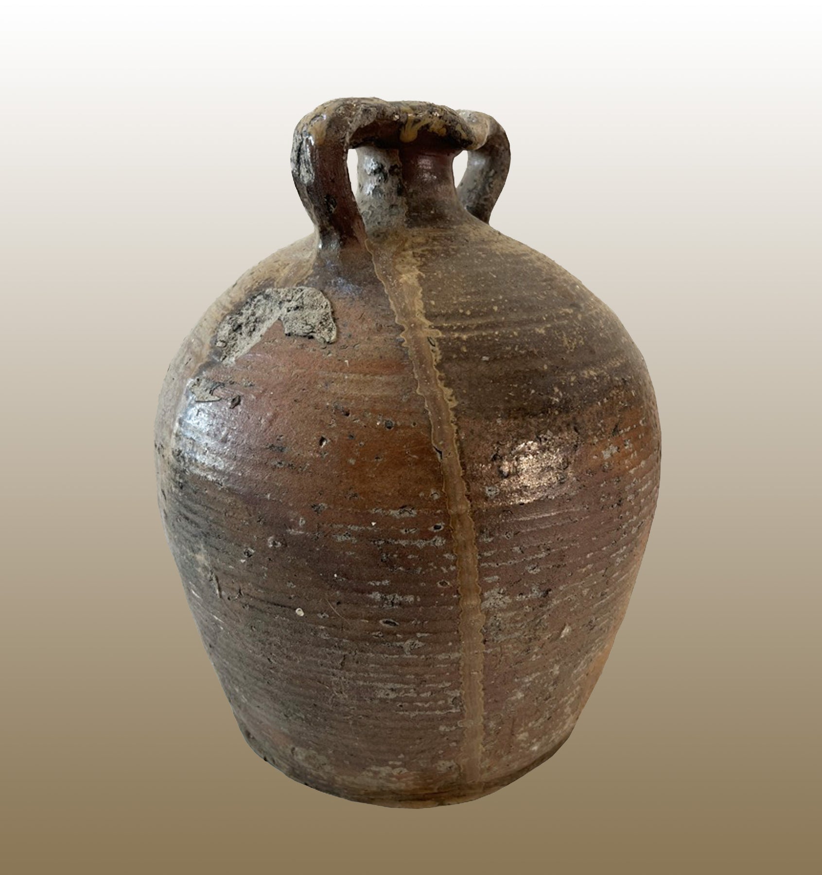 19c French Provincial Stoneware Double Handle Water Jug